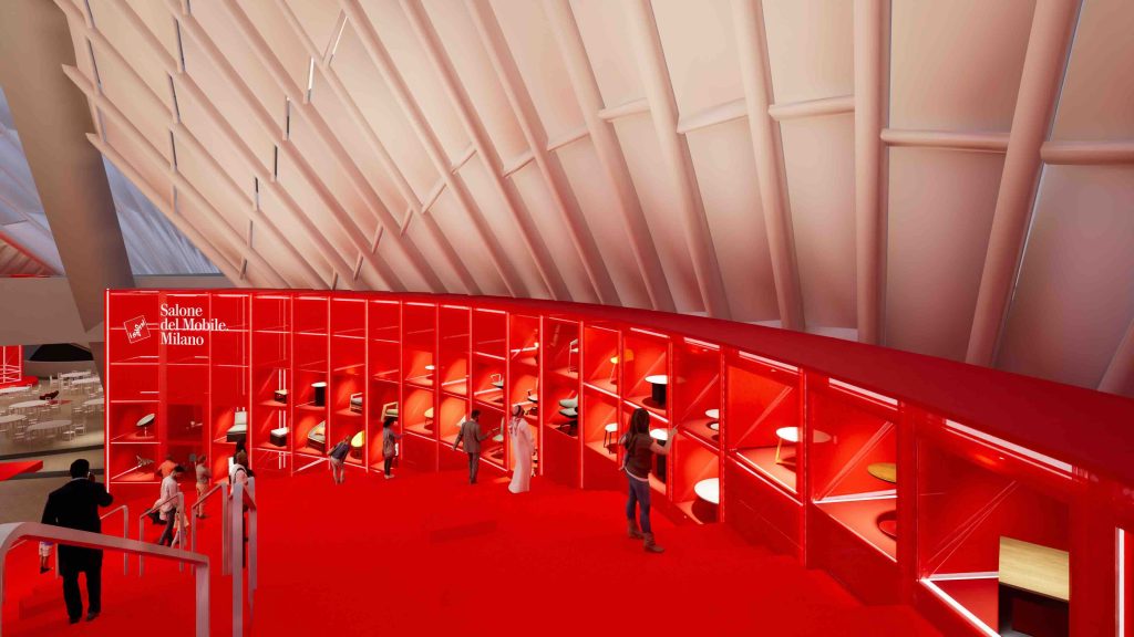 De beursruimte wordt ingericht met een scenografische installatie van bureau Giò Forma, die de ruimte zal markeren met het kenmerkende rood van de Salone. De presentatie van meubels, verlichting, oppervlaktematerialen en accessoires van met zorg geselecteerde hoogwaardige Italiaanse bedrijven, vormt de basis voor een breder programma van zakelijke en culturele uitwisseling. In het hart van de installatie zal een modulaire steigerstructuur, gehuld in een semi-transparante rode stof, dienen als een cultureel platform. Rood is daarbij het verbindend element, en een symbool van energie en de toekomst. Daaromheen zal een cultureel programma plaatsvinden dat bestaat uit masterclasses en rondetafelgesprekken, georganiseerd in samenwerking met de Commissie Architectuur en Vormgeving en geleid door prominenten uit Saoedi-Arabië en Italië. Het Forum, een platform voor dialoog en professionele uitwisseling, zal zich bezighouden met studies en de stedelijke transformatie van het Koninkrijk in een informele setting.