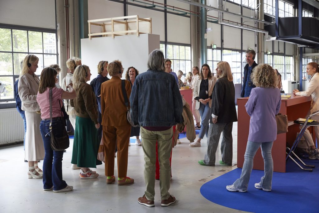 Hun ontwerp speelt met contrasten: het industriële karakter van het Klokgebouw wordt aangekleed met warme textiele kleuren die uitnodigen tot aanraken en vertragen. Zo ontstaat een omgeving die zachtheid brengt in de ruimte een plek waar je niet alleen kijkt, maar ook voelt.
