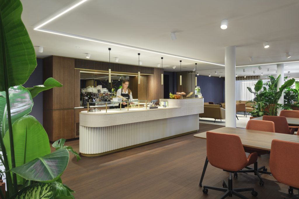 Naast eigentijdse werkplekken biedt het gebouw ook ontspanning en gastvrijheid: de ontmoet- en overlegplekken, het moderne vergadercentrum en het open lunchcafé zijn toegankelijk voor zowel huurders als bezoekers.