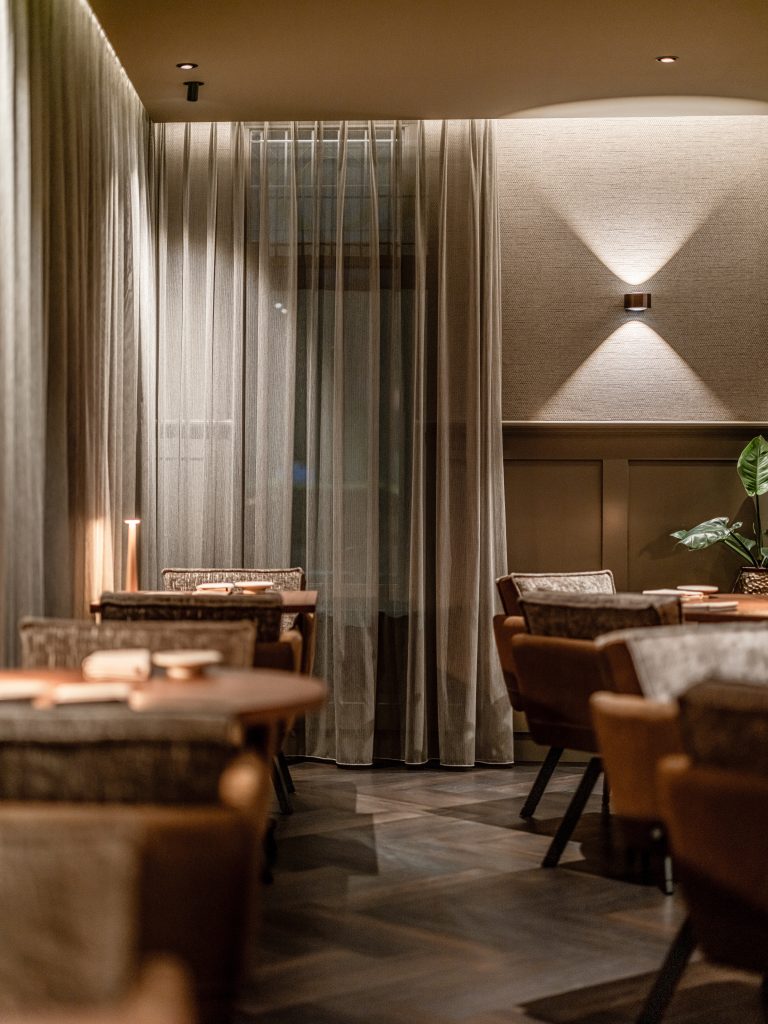 De kracht van raamdecoratie is vaak subtiel, maar bepalend voor de ambiance. Zoals bij Restaurant Olijf in Nuenen met een interieur dat is ontworpen door Studio Hans Kuijten. De gekozen raamdecoratie filtert het daglicht en creëert een zacht spel van licht en schaduw, passend bij de warme tinten en materialen in de rest van het interieur. Het resultaat? Een lichte, open sfeer overdag en een intiem decor in de avond. “Raamdecoratie lijkt soms een detail, maar het is juist dat detail dat een restaurant maakt of breekt”, legt Rik uit. “Bij Olijf was onze missie helder: zorgen voor een intieme sfeer die gasten uitnodigt om langer te blijven en nog een glas wijn te bestellen. Het is prachtig om te zien hoe de raambekleding de beleving versterkt zonder dat je het direct doorhebt.”