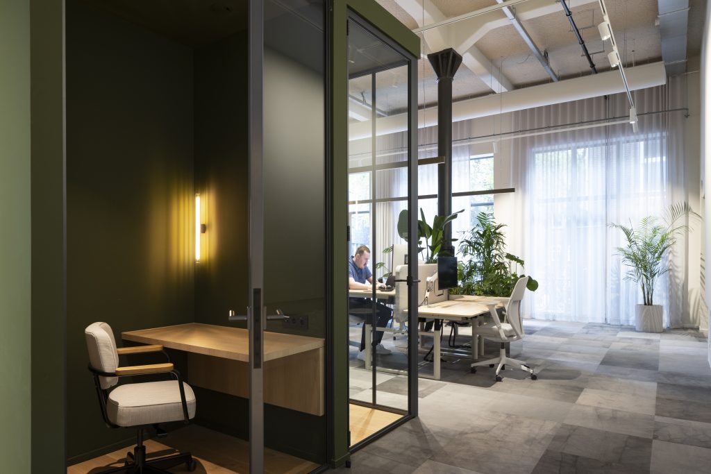 Een passerende medewerker van Rewire zegt: “Dit is echt een hele fijne werkplek, met ruimte voor afzondering, en toch voelen we ons met elkaar verbonden dankzij het interieur.” Boonstra kijkt blij op en bedankt voor dit spontane commentaar: “Dit is precies wat we wilden bereiken. De medewerkers voelen zich hier merkbaar thuis, alsof het altijd al zo heeft bestaan.”