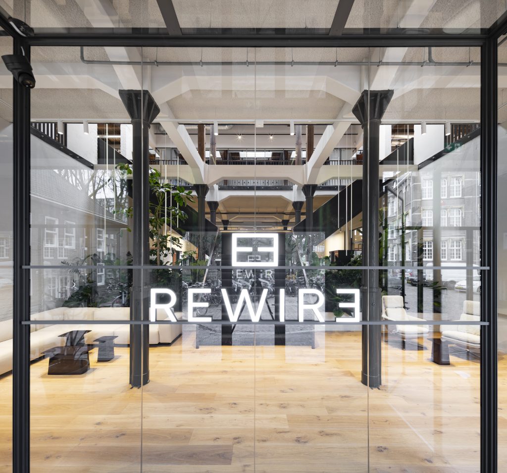Toen bureau voor AI-ontwikkeling Rewire een nieuwe huisvesting zocht, kwam het voormalige stallengebouw van de Amstel brouwerij aan de Amsterdamse Mauritskade in beeld. Voor het interieur van dit historische pand werd een pitch uitgeschreven, die gewonnen werd door up architecture uit Castricum.