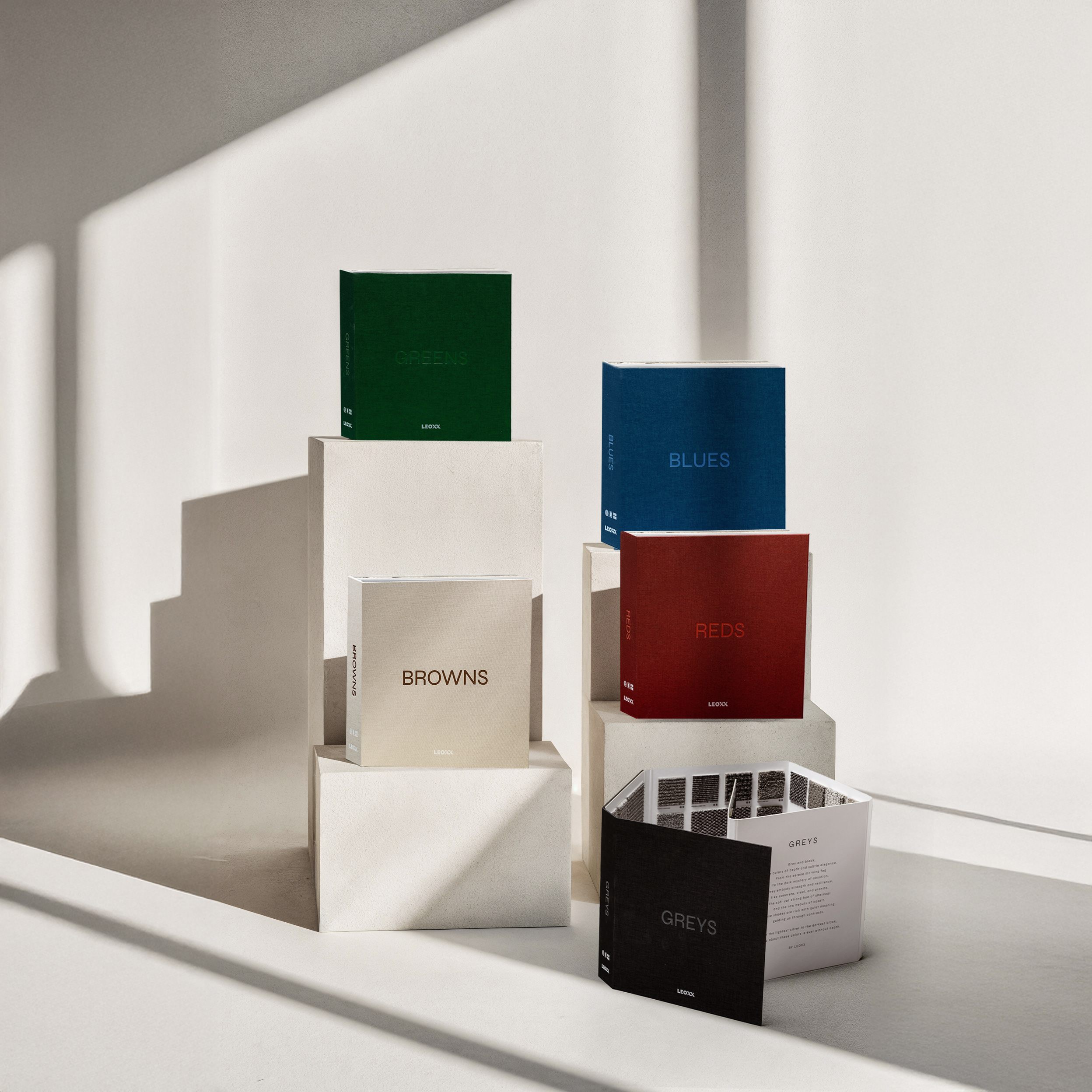 Leoxx presenteert een compleet vernieuwde editie van de Color Books: een iconische collectie vol getufte en geweven tapijten, gebundeld in vijf overzichtelijke kleurboeken: Reds, Greens, Blues, Browns en Greys. Elk boek is samengesteld rond één kleurgroep en vormt zo een krachtig ontwerpinstrument voor interieurontwerpers en -architecten die kleur als uitgangspunt nemen.