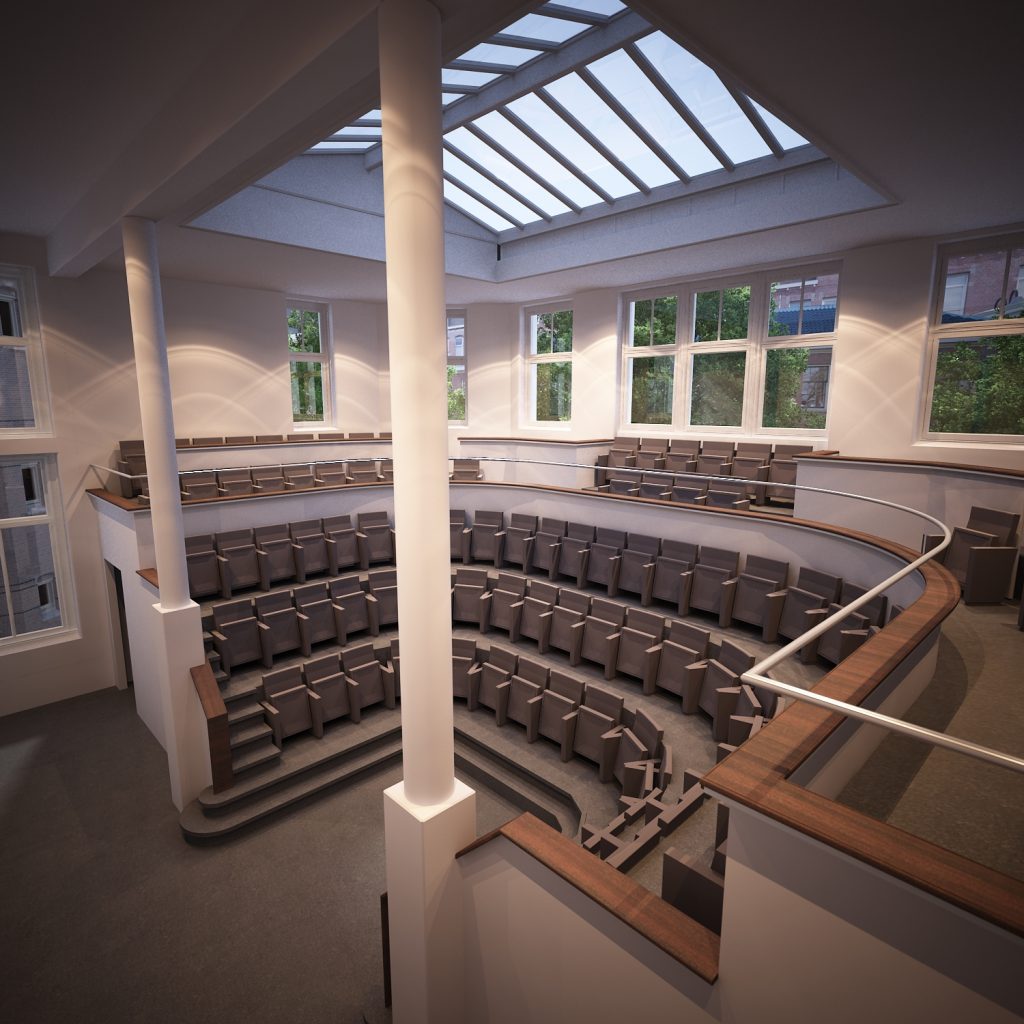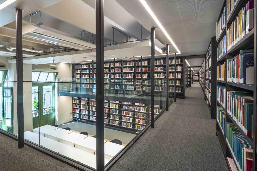 De architecten wilden in hun ontwerp geschiedenis en innovatie samenbrengen in een toekomstgericht complex, met respect voor het monumentale karakter van de gebouwen. Het programma van 300.000 boeken, 24 onderwijszalen, 1600 studieplekken, kantoren en ontmoetingsruimtes is ondergebracht op maar liefst 14,500 m2. De voormalige ziekenzalen van de Tweede Chirurgische Kliniek zijn verbouwd tot leslokalen en studieruimtes met boekenwanden, de kleinere kamers van het Zusterhuis bieden plaats aan de kantoren van de medewerkers.